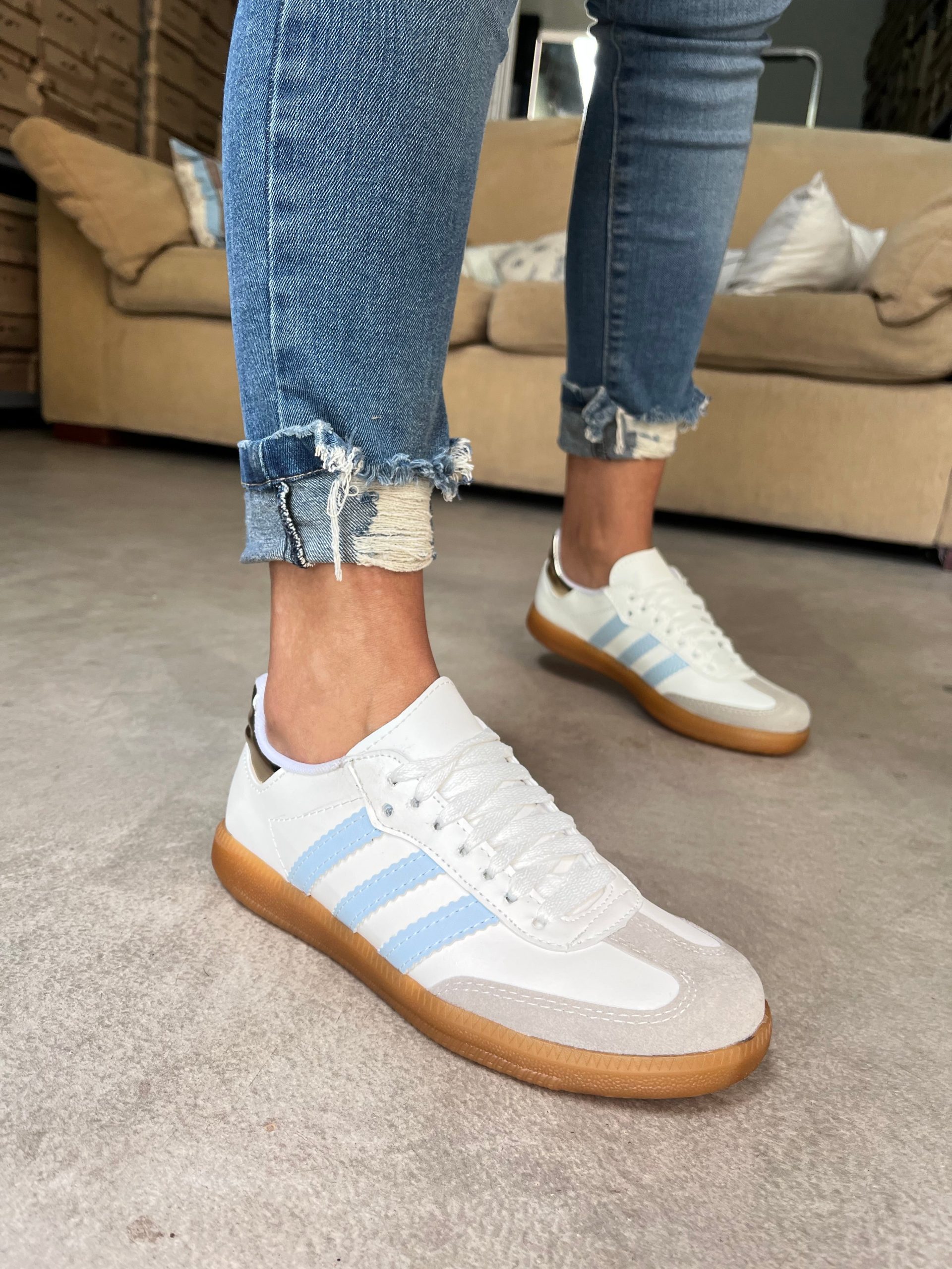- Detalles de plata metalizado en el talón o Celeste según disponibilidad de stock